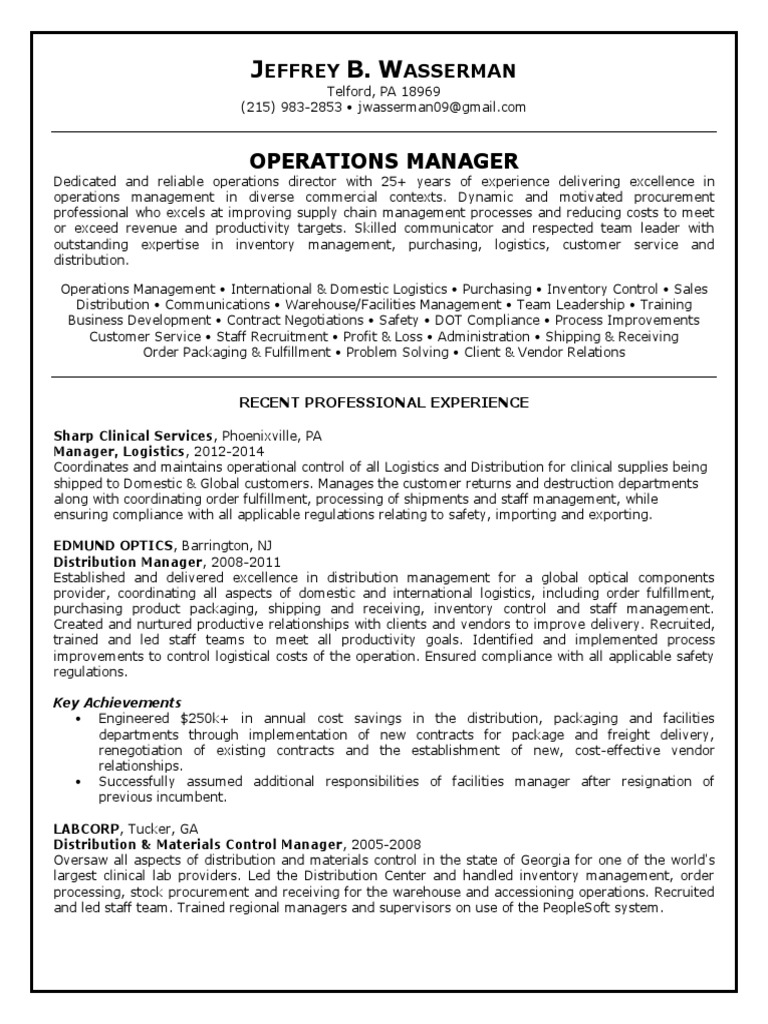 Logistics managers are responsible for overseeing the overall supply chain management, the most common responsibilities that are highlighted in the resume include – organizing and monitoring supply and distribution of goods, managing entire order cycle, managing logistics, warehouse, transportation, and customer service, liaising with manufacturers, retailers, and Distribution Manager. The resume example below is specific to someone who is currently working in the distribution and materials management field. This document opens with a summary of Jerry’s experience, highlighting his 35+ Download our free resume templates. WorkBloom's resume templates all come with matching cover letters. JESSE KENDALL. Elm Street • Miami, FL () • jkendall@blogger.com QUALIFIED DISTRIBUTION CENTER (DC) MANAGER. Highly skilled and results-oriented professional with demonstrated success in logistics management within